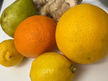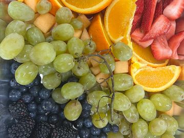 Pineapple,pomegrate, strawberry, blueberry, agave