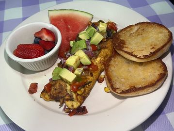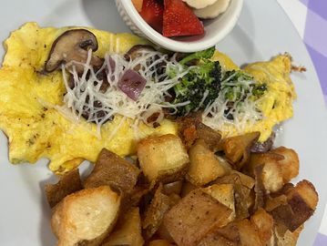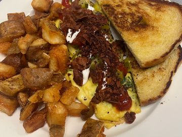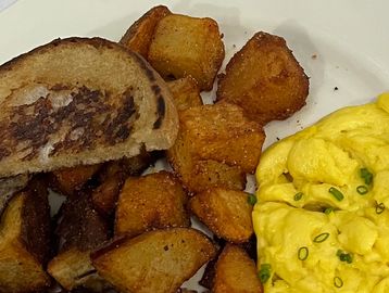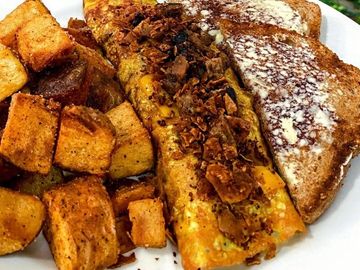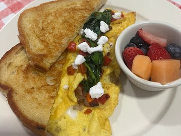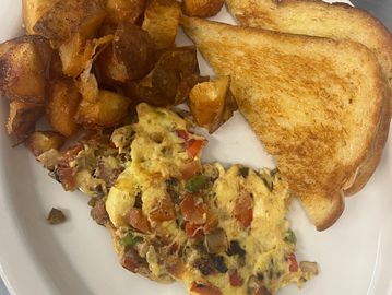 Choose three veggies to be scrambled into your eggs plus homefries and choice of toast