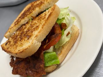 House made rice paper bacon, lettuce, tomato, mayo, on toasted sourdough