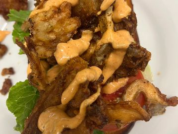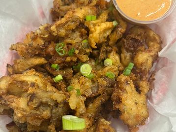 Batter fried oyster mushrooms tossed in a savory seasoning and served with remoulade dressing